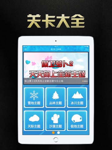 -天际主题:每个地图每个关卡都会有详细的记录,点击你所需要的关卡,即可查询到想要的攻略,很方便的。动一动小手就可以保护你们的萝卜啦。