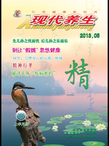 荣获第三届国家期刊奖百种重点期刊称号的《现代养生》杂志是本深受广大读者喜爱的养生健身科普杂志。她以科学理念告诉现代人如何保养生命;她融古今中外传统养生知识与现代保健养生理念于一体,通俗易懂,深入浅出,风格高雅,内容健康,版式新颖,实用性强。一刊在手,健康长寿。