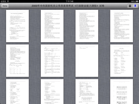次进入某一套试题或资料时,会进入您上次退出的页面,非常方便。本软件还提供快速定位功能,通过点击页面下方的thumbs标签快速定位到某一页面。