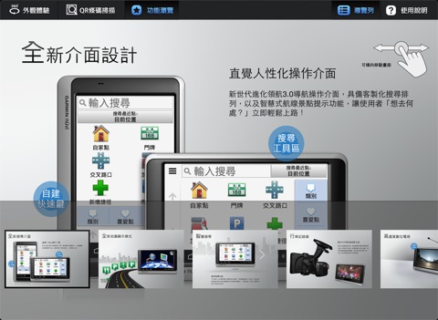 全新的互動體驗,讓您更了解Garmin多元化領域的衛星導航產品,透過本APP,不論您是使用手機或是平板電腦,都可隨時觀看Garmin最新的產品內容,進而了解更豐富且詳盡的產品資訊,快速掌握Garmin每一個最新上市導航產品的特色,厭煩傳統平面型錄條列式的單向介紹嗎? Garmin將手機及平板電腦化身型錄,打造互動式目錄的聰明選購。