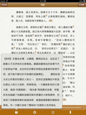 讀的懂的《史記》版本,注釋詳細,檢索方便,注釋和原文分離顯示,不影響原文的閱讀。包含分段譯文與導讀。本應用能讓您在讀的懂的前提下,品味原汁原味的史記。