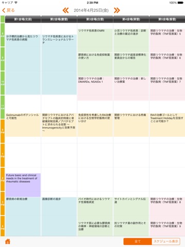 プログラムをプログラム別・日程別・会場別に閲覧できます。
