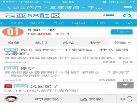三亚58社区App---掌上三亚,三亚地区最好的网友交流沟通互动平台。关注三亚、了解三亚、互动三亚。包括三亚生活娱乐、新闻爆料、旅游户外、餐饮美食、房产租房、人才招聘、二手市场、婚纱摄影、情感交友、商家店铺、购物商城、教育培训、装修建材、同城商业活动户外运动等信息交流互动。随时随地免费发布信息与网友互动交流,三亚网友聚集之地!