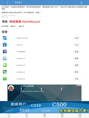 A second-hand market for Macau people, including clothing, digital, computer, mobile phone, cars, supply and demand and other categories, so that you can find the favorite items!