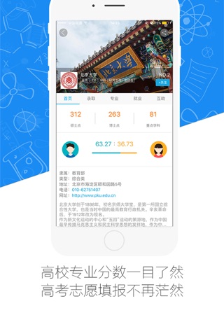 6. 院校库/专业库/职业库: 覆盖全国所有高校,985/211/双一流高校一网打尽,查分数、查专业、查院校一站式服务。汇集了教育部2500+专业、5年+分数线。整合各种职业信息、就业岗位、招聘信息,并与专业库进行联动,让专业选择更有前瞻性。提供热门专业推荐和职业前景分析,让考生选择专业不再迷茫。