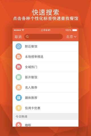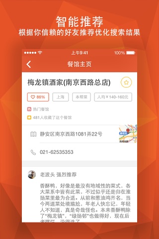 - 收藏一个餐馆,当你在附近找餐馆时会获得提醒