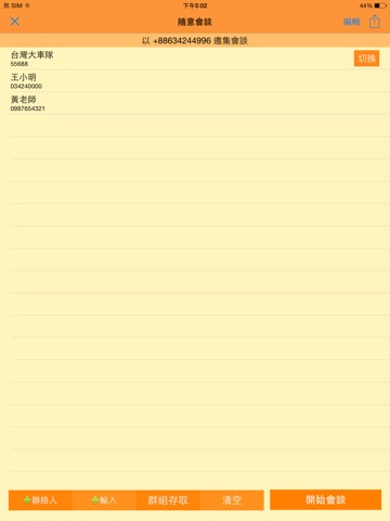 提供使用簡易之多人語音聊天室,免申裝及免申租,但需支付會談電話費,用戶可隨時隨地以任何電信終端撥打服務代表號或透過快樂兩下APP點選來啟動多方語音會談,會談邀集人可在外或在家/辦公室,分別以行動或市話門號,透過智慧終端螢幕與聯絡簿邀集會談;並提供會談成員動態管控畫面,包含成員狀態、增刪、靜音及號碼變更等功能。