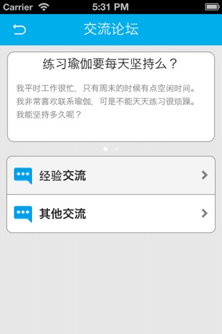 这款app包含了瑜伽常识,减肥瑜伽,健身瑜伽,心灵瑜伽,瑜伽用品等各方面的知识,内容非常丰富。