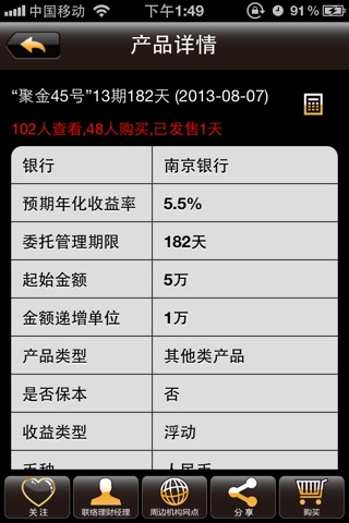 一键单击便可以和银行的理财经理通话了解更多详情,更欢迎您将好产品分享给亲朋好友,微博、微信、短信、电子邮件一键分享。