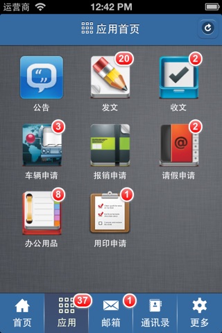 鸿信云办公iOS版本集成了鸿信云办公平台上的常用流程和应用,包括通知公告、通讯录和内部邮件等,帮助您在掌上轻松处理待办工作,实现随时随地协同办公。另外,该版本还新增了新闻阅读、天气预报、地图定位、票务预定、微博浏览等快捷应用,使您的商务生活从此更加得心应手。