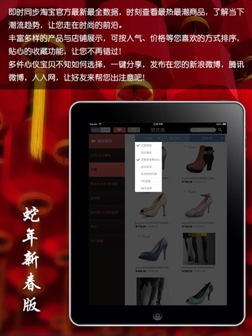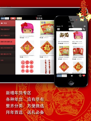 【淘宝】春节年货特别版 - 是专门为喜爱淘宝网购的亲们定制的一款iOS应用,以界面简约、操作简单、功能贴心为理念,为亲们提供最优质的商品、最舒适的网购环境。