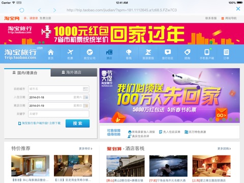 定机票、酒店、门票火车票全搞定,还有景点攻略等,集成淘宝旅行,携程旅游,去哪儿网等的特价信息特价酒店机票随时抢。