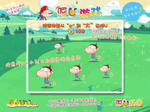 UU变身!阿U可以变大,也可以变小哦!快看看哪个最小,再一个个变大地把阿U排出来吧!通过游戏学会比较大小和先后顺序,对于儿童的认知能力很有帮助哦。小朋友们快来比比看!
