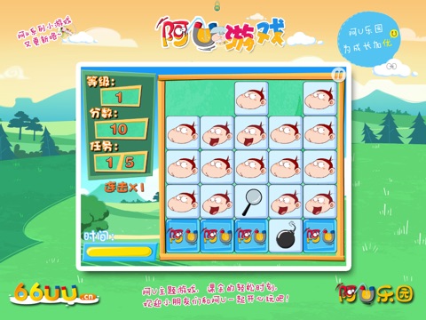 阿U来啦!一款可以考验小朋友眼力和记忆力的游戏来了!快来翻开纸牌,看看背后的阿U表情是不是一样的呢?相同的阿U表情可以消除纸牌!加油,不要让纸牌越来越多哦,小朋友,你能闯几个关卡呢?