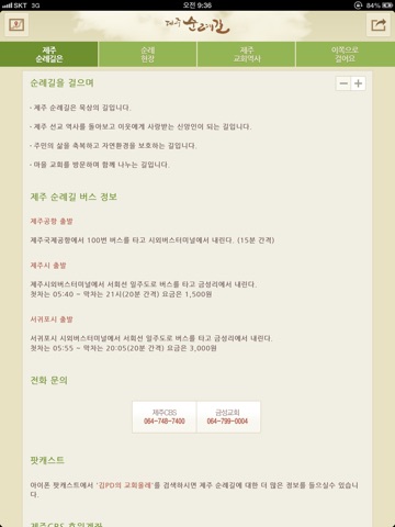 - 제주 순례길은: 제주 순례길에 대한 의의, 교통 정보, 문의처 안내