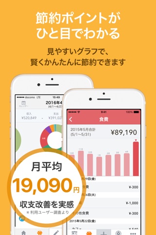 ・簡単に家計簿がグラフで見えて、日々のお金の流れを「見える化」