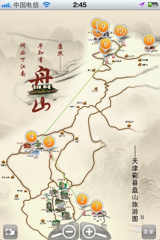 1、标准的天津盘山风景区示意图。