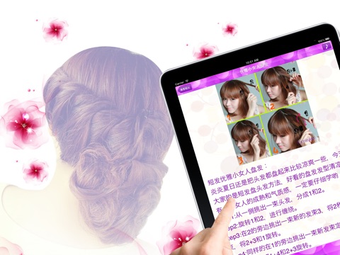 各位美女们不用再羡慕别人编出美美的发型,而遗憾自己不会编发的烦恼了。本应用搜罗了各种不同风格的编发教程,超级简单易学,让你根据教程解说就可以马上给自己的头发编出一个美丽的发型。而且编发不仅仅只是长发美女们的专利了,短发美女也可以编发哦,本应用搜罗了许多短发MM、长发MM的编发教程,全心全意为各位MM解决编发的烦恼,为美丽锦上添花,赶紧试一试吧!!!