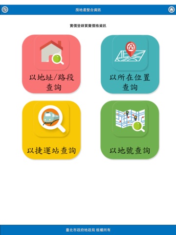 臺北市房地產整合資訊提供「地籍整合資訊」及「實價登錄價格資訊」查詢服務: