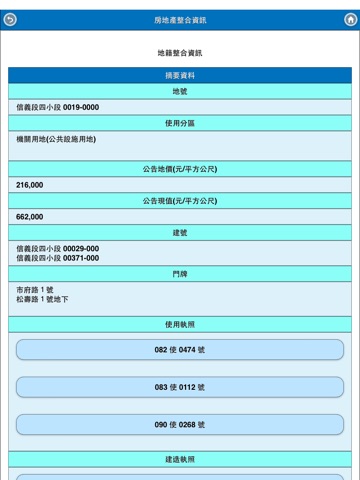 【地籍整合資訊】提供以地址、所在位置、地號、建號(擇一)查詢符合地號之公告土地現值、公告地價、建號、使用執照、建造執照之資訊。