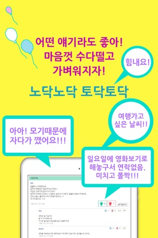 - 노닥노닥 토닥토닥 게시판에서는 연애 고민, 일상 공유 등 그 어떤 이야기도 마음 편히 털어놓으실 수 있어요. 감자 친구들의 따뜻한 댓글들이 위로와 재미를 선사해 드려요.