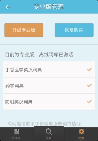 3. 离线查词:专业版可安装多个离线词库,查询无需联网,更节省流量。