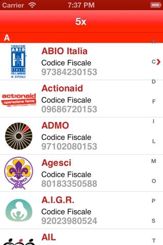 Non serve più memorizzare il Codice Fiscale dellassociazione dinteresse. Questa applicazione, facilissima da utilizzare, visualizza rapidamente in ordine alfabetico il nome, il marchio e il Codice Fiscale necessario alla compilazione dei redditi.