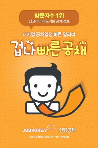 겁나 빠른 공채 앱은 공채를 준비하는 취준생들이 공채 일정을 보다 손쉽게 확인할 수 있도록 전형 단계별(서류전형, 마감, 합격자 발표 등)로 잡코리아에서 겁나 빠르게 공채 일정을 제공하는 알림 서비스입니다.
