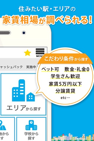 マイナビ賃貸アプリでは、賃貸住宅、賃貸マンション、賃貸アパートの物件情報や、住みたい駅、街、エリアを指定して検索することができます。