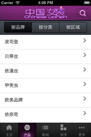 中国女装门户以紫红色为主色调,更能突显时尚感,该客户端向广大客户展示了一个大型的女装行业移动互联网门户平台,以便捷的浏览方式、强大的应用功能,最新的资讯信息,为广大客户展开了一个丰富的女装行业画卷,时时刻刻的为您更新,让您爱不释手。