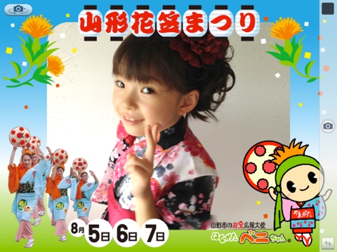 フレーム選択で、山形市内のイベントや観光地とともに山形市お宝広報大使