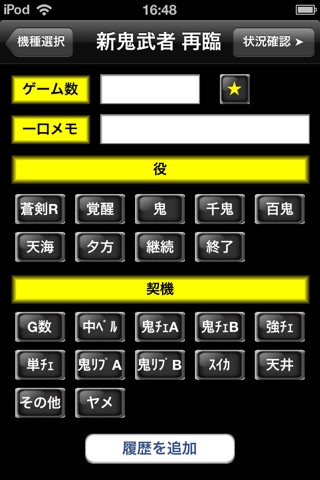 パチスロを打った時の履歴を簡単に作成できるアプリです。