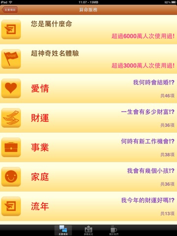 ◎算命服務--- 400個您最想問的問題, 算出您今生的財運、何時遇見真命天子、您的姓名分析等。豐富而完整的精準詳實分析、就像大師親臨為您量身訂作專屬服務。