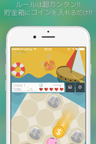 ステージを回転させて、コインを貯金箱にイン!