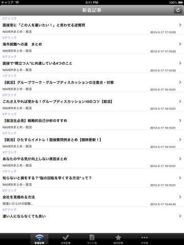 このアプリは、ネット上で話題の就職活動に関する記事・ニュースをまとめて配信するアプリです。