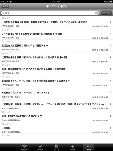 保存しておいた記事を見ることができます。 記事の削除も可能です。