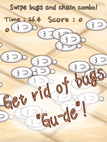 Swipe "Gu-de" and beat another "Gu-de", you can get rid of many "Gu-de" at once and you will get more score.