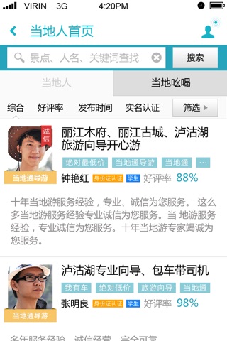 所有当地人均经过去哪儿严格的身份信息验证 , 提供吃住行游购娱全方位服务 .