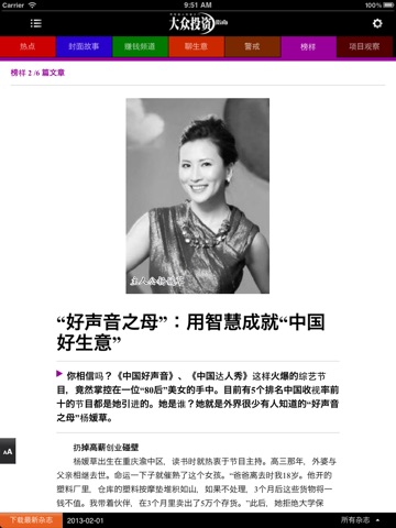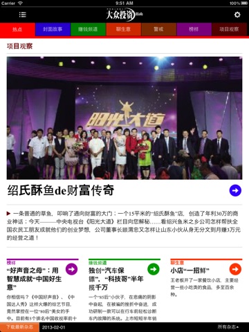 《大众投资指南》由天津市新闻出版管理局主办,创刊十多年来,无数读者阅读本刊后,从普通创业者走向富裕阶层。《大众投资指南》,紧扣当前经济热点、难点问题,以各行各地最新投资机会和百业百态的最变化新情况为核心。辅之百姓经济话题和全方位的中小投资资讯服务;一册在手,洞悉中小投资前景、趋势,遍览中小投资、生意的全貌。随着杂志质量的全面提高,相信会有更多百姓从中受益,成为新时代的新富豪。