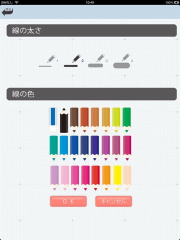 ・えんぴつ:23色からお好きな色で線描することができます。太さも4種類からえらべます。