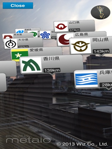あなたの居る地点から近い都道府県庁がかざした方向に現れます。都道府県の名前をタッチすると、ご当地情報が見れます!