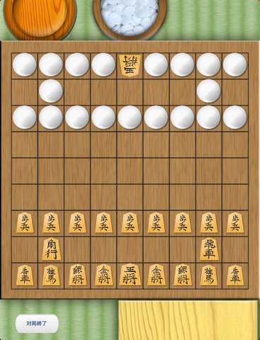 ・お互いに相手の王を取ると勝ちです。(囲碁の陣地は関係ありません。)