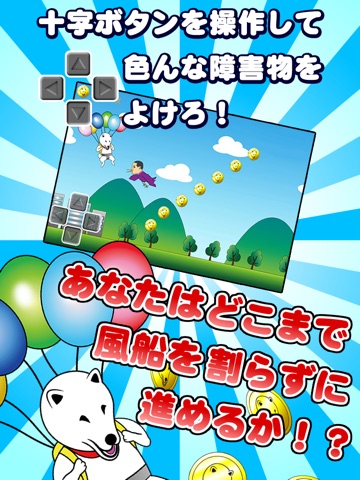 風船で空中を漂うワンチャンを十字キーを使って動かしましょう。
