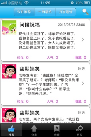 *内容排名,包括今日流行,一周最热,月度最佳