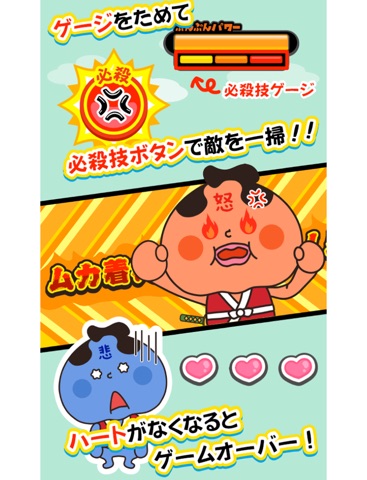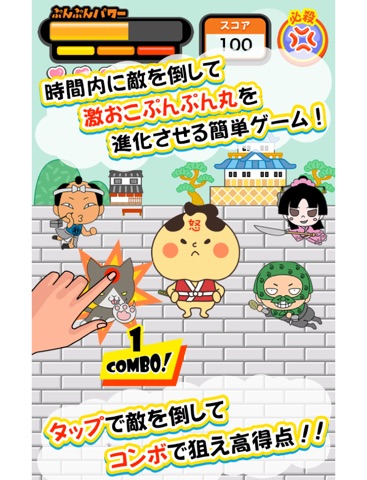 プレイ画面に表示される敵をタップするだけの簡単操作です。お邪魔な敵を倒して『ぷんぷんパワー』を満タンにしましょう!