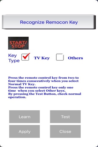 * My remote control is infrared universal remote X apps. This app is hasilsu use with my remote control dongle. The same performance as an ordinary remote control 5-10m transmission distance and more information about the dongle and remote support is available at http://myremocon.com.