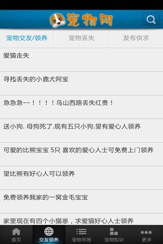 宠物网客户端是一款简单易用的宠物行业客户端信息平台,集交友领养、宠物市场、宠物知识等功能于一体。用户简单注册登陆,就可免费在线发布一定数量的供求信息,是宠物行业人士上网了解宠物相关资讯的首选平台!各地宠物爱好者可在该客户端上发布供求、发布广告,商机无限!宠物网客户端以其便捷的浏览方式,强大的应用和一键拨打联系人电话功能,最新的资讯信息,为广大客商展示一个丰富多样的信息平台。