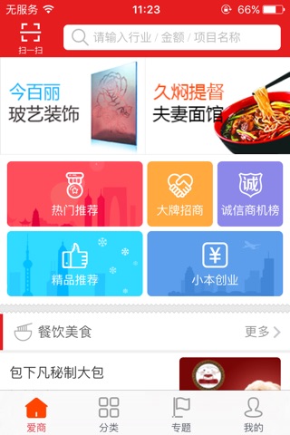 23爱商网推出此款APP,创业信息量非常大,里面包含了八大类别,上千个创业精品项目和一些优秀的创业专题,让您在第一时间就可以快速直接地找到符合您需求的创业信息!