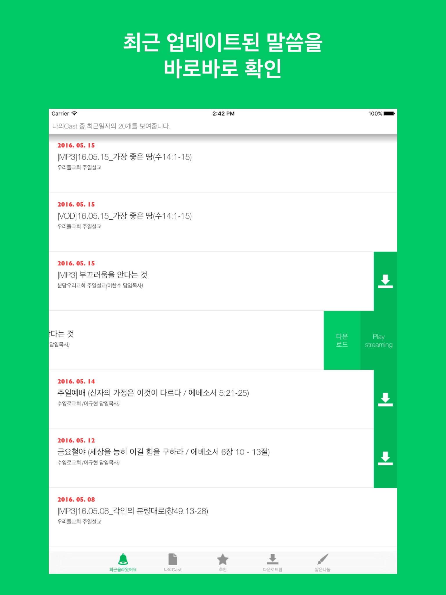 * 크리스찬팟를 이용하시면 아래와 같은 방송을 들을 수 있습니다.