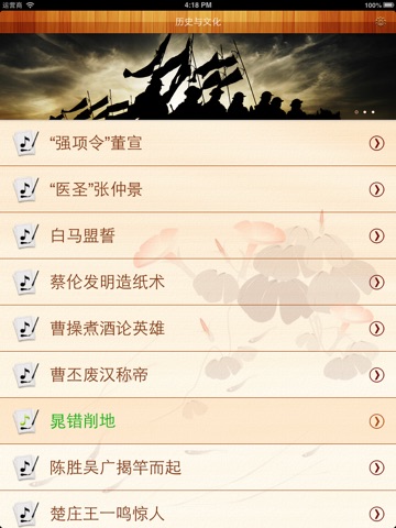 《中国历史与文化》讲述的是中国古代一些有名的历史事件与名人事迹,是一部能够体现中文文化精髓的有声读物。